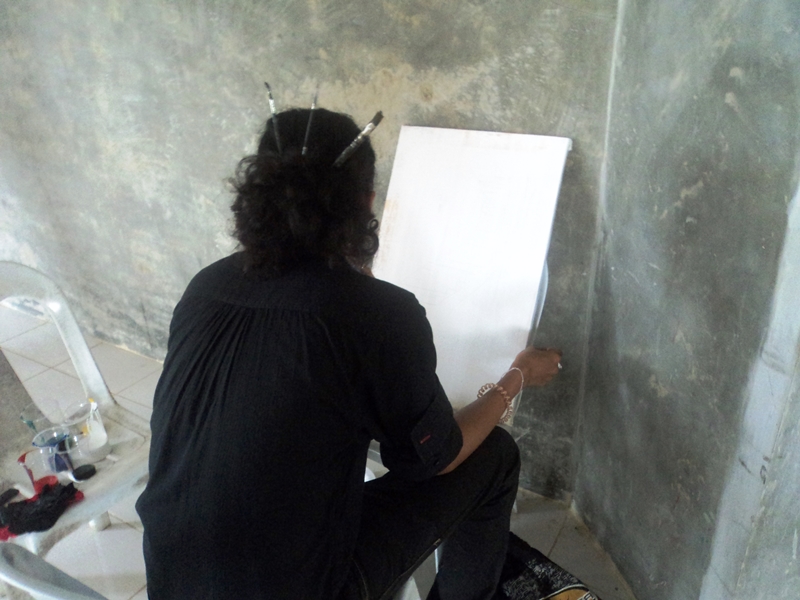 | The artists having their concentration and actual painting |